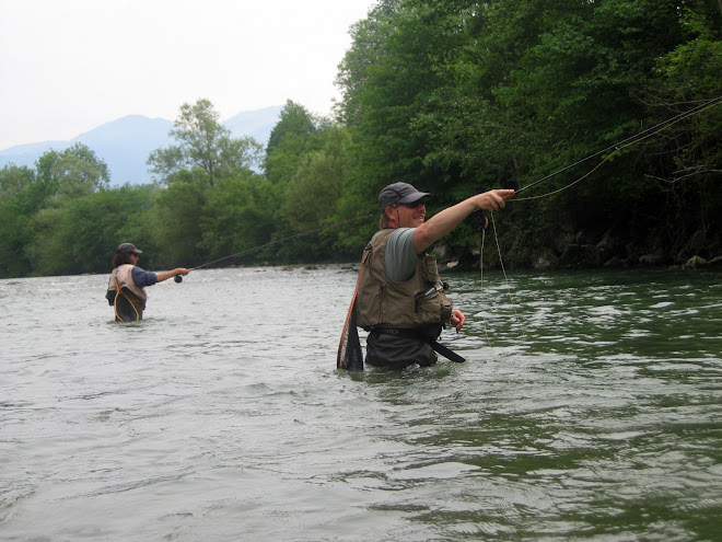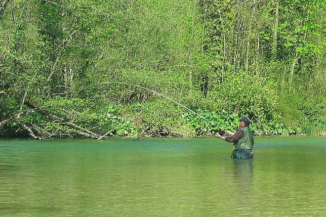 le jours se lève je suis à la recherche d'autres truites l'eau est très claire